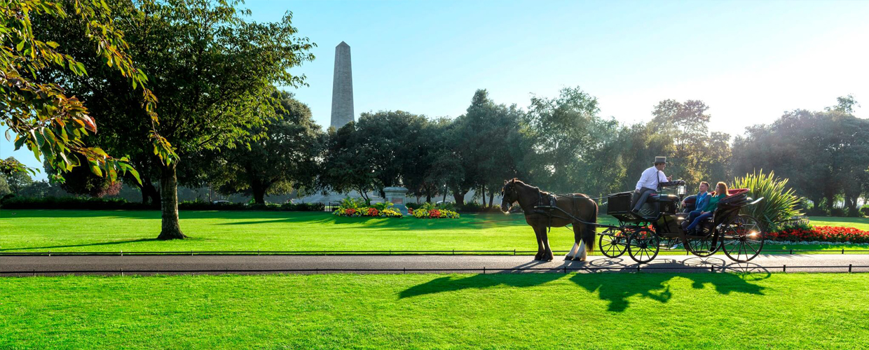 凤凰公园里的最高建筑物是63米的惠灵顿纪念碑,这是为了纪念惠灵顿将军在滑铁卢大败拿破伦而建立的。