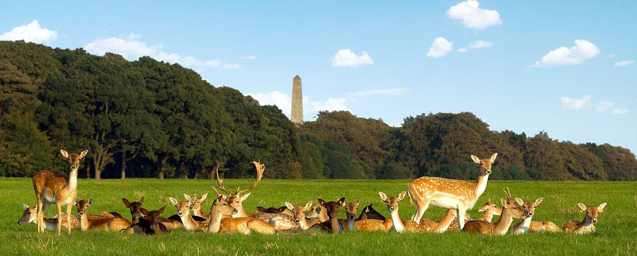 历史上,这里是约翰王的皇家猎鹿场,这也是为什么凤凰公园现在还有大批的自由地放养的野生梅花鹿。这些梅花鹿还是我们宝岛台湾的梅花鹿的后代呢!因为,爱尔兰从日本引进了这些可爱的梅花鹿,而日本的鹿又是当年他们从台湾带回去的。